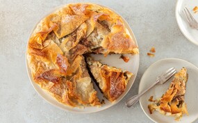 Breng de abrikozenjam met een scheutje water en de kurkuma aan de kook. Laat afkoelen en bestrijk de taart ermee. Haal de taart uit de ring, verwijder het plastic en laat de taart ontdooien. Garneer de taart met een takje aalbesjes.