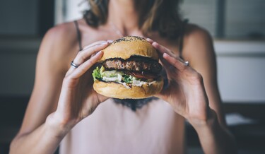 Een dikke doch luchtige burger die best voor vlees door kan. Fijne bite, gebalanceerde kruiding, alleen wat veel ui en een laffe nasmaak.