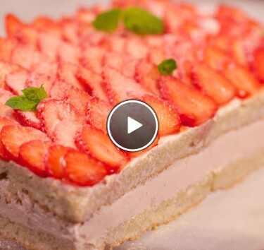 Breng voor de banketbakkersroom, in een pan, het aardbeiensap en de helft van de suiker aan de kook. Roer in een kom de eidooiers met de rest van de suiker los en roer de bloem erdoor. Meng een scheutje sap door het eimengsel, schenk terug in de pan en roer goed door. Breng de banketbakkersroom aan de kook en gaar op laag vuur circa 3 minuten. Laat de banketbakkersroom afgedekt met plasticfolie afkoelen. Roer de boter luchtig met de poedersuiker en meng de banketbakkersroom erdoor.