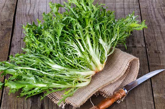 Snijd en was de andijvie en laat de andijvie uitlekken op een vergiet.