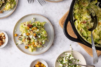 Breng op smaak met zout en peper en een snufje nootmuskaat. Voeg, al roerende, beetje bij beetje de andijvie toe en warm goed door.