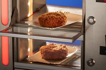 Haal de bamischijven eerst door de bloem, daarna door het ei en vervolgens door de panko. Laat circa 20 minuten opstijven in de koelkast.
