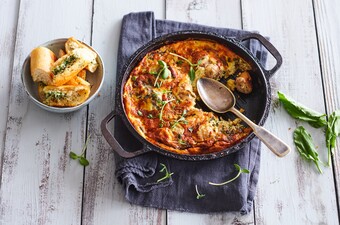 Bak 25-30 minuten in de oven. Serveer met een salade.