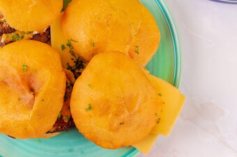 Doe ongeveer 3-4 plakjes deeg in de hete olie. Keer ze om wanneer ze naar boven komen drijven en bak in totaal in 3 tot 5 minuten goudbruin. Laat uitlekken op een bakplaat bedekt met keukenpapier. Herhaal tot alle Johnny cakes zijn gefrituurd.