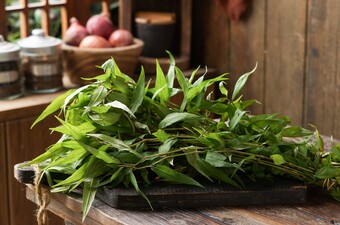 Maal de knoflook, rode ui, laos, rode peper, citroengras, gedroogde garnalen, groentebouillonpoeder, garnalenpasta, kurkuma, vissaus en 4 el olie in een hakmolent fijn.