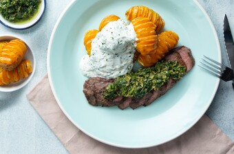 Bestrooi het vlees aan alle kanten ruimschoots met de rub en gril het vlees direct, op een heel hete temperatuur aan elke kant tot het bruin en gekaramelliseerd is. Laat tijdens het omdraaien garen tot een kerntemperatuur van 50-54 °C en laat rusten.