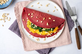 Maak na circa 2 minuten de kantjes los en draai de pannenkoek om. Bak kort aan en serveer de pannenkoek.