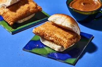 Pel en snijd de ui in dunne halve ringen. Snijd de paprika in dunne reepjes samen met de portobello’s. Doe alles in een kom en combineer met de balsamico, worcestershire saus, olijfolie en zout en peper.
