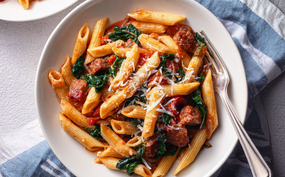 Yes, yes, yes: deze spaghetti met chorizo en garnalen is fantastisch lekker. Of het een doordeweekse dag of weekend is, deze pasta kan altijd.